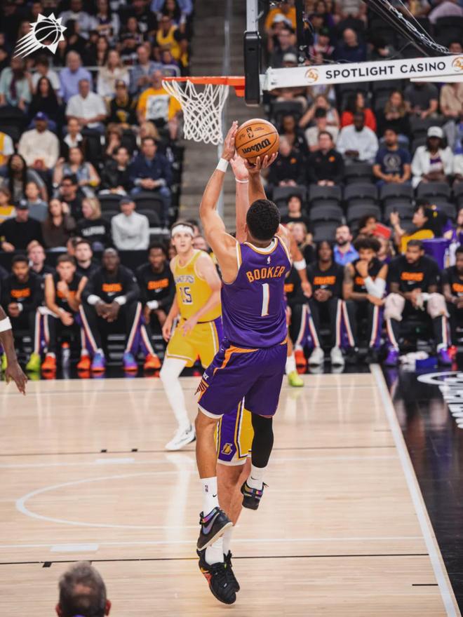 第一节打完,太阳31-16领先湖人15分。太阳首节10次助攻,湖人全队只有2次助攻。里夫斯单节4中3得到9分,个人进攻没问题,但助攻数是0。第二节八村塁连得6分,布朗尼造杀伤,湖人迫近分差。海斯空接隔扣布克,点燃全场!