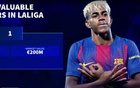 西甲U21球员身价TOP10:亚马尔仍2亿欧居首,巴萨、皇马各4人