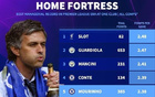 执教英超单一球队各项赛事主场场均积分榜:斯洛特2.48分居首